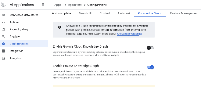 AgentSpace 提供多项高级功能,例如与数据存储集成以存储自有数据、与 Google 知识图谱或私有知识图谱集成、用于向 Web 公开 Agent 的 Web 界面、使用情况监控分析等(见图 5)。