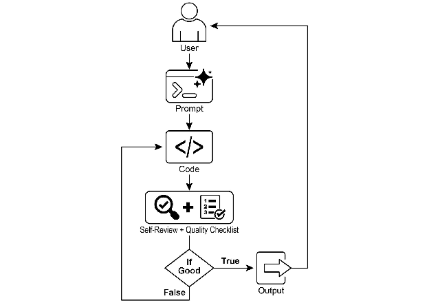 有了这个任务,AI 程序员开始工作并产生其第一个代码草稿。然而,它没有立即提交这个初始版本,而是暂停执行一个关键步骤:严格的自我审查。它仔细地将自己的创作与你提供的质量检查清单上的每一项进行比较,充当自己的质量保证检查员。在这次检查之后,它对自己的进度做出一个简单、无偏见的判断:”True”如果工作满足所有标准,或”False”如果它不足。